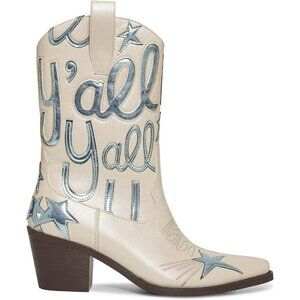 Pentagram Embroidery:These mid calf boots boast a stylish five pointed star and letter embroidery, elegantly stitched for a standout look.