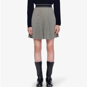 - Elasticated waistband, contrast waistband, all-over dogtooth design, all-over rhinestone embellishment, pleated design, mini length