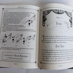 includes over 35 magic tricks and magic trick cards in the envelope on the back cover.