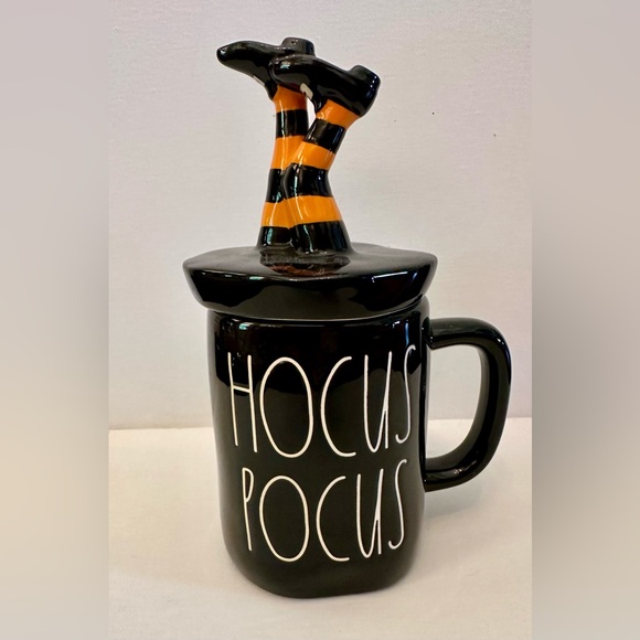 Black Hocus Pocus Rae Dunn Mug with Witches Legs Topper