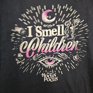 Hocus Pocus T-Shirt "I Smell Children" Womens Size L Black Witch Disney Tee