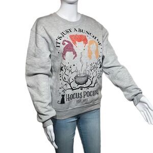 By DISNEY, NWOT/Perfect condition crewneck sweatshirt with front Hocus Pocus “EST 1693” Winifred, Sarah & Mary hair graphic.
