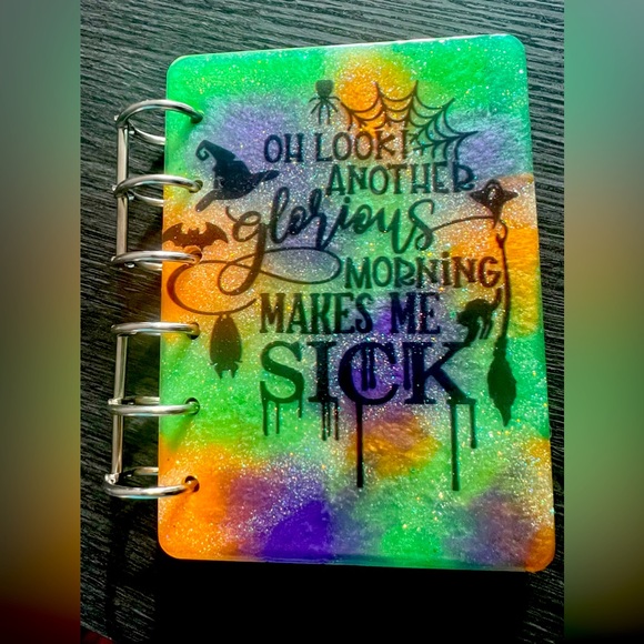 Handmade pocket book with Hocus pocus quote. Glows in the dark. Notebook is refillable and comes with 50sheets already inside. Can get new 50ct packs of paper on Amazon. Message for custom orders. Can be personalized. Fits perfectly in a purse/small bag.