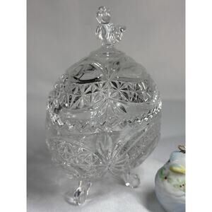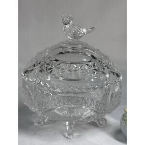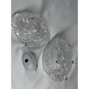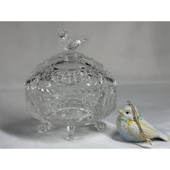 Hofbauer Byrdes Bird Finial Lead Crystal Candy Dish Trinket Box And SM Ornament