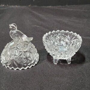 Hofbauer Byrdes Lead Crystal Clear Cut Bird Small Round Trinket Dish Lid Germany
