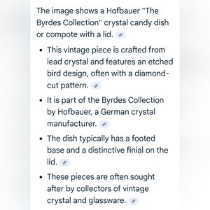 Hofbauer Crystal Candy Dish with Lid, Vintage, "The Birds Collection"