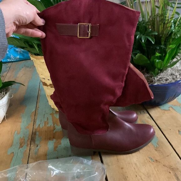 Hoff knee high boot burgundy suede like material . 6.5 size