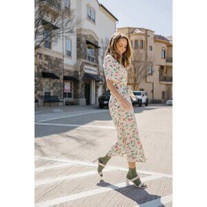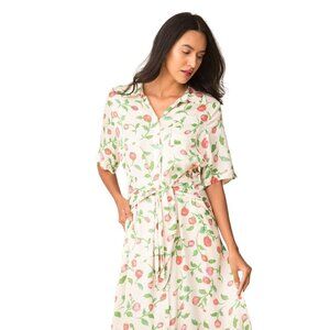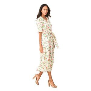 The Gabriella dress in creme print is this seasons must have shirt dress. The dress is in a pretty cream color with a romantic floral pattern. The dress is tied in the waist making it suitable for many different body types.
