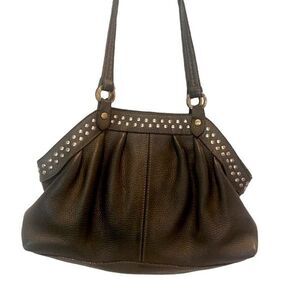 TAGS: hogan leather handbag, chocolate brown leather hobo, italian designer purse, studded shoulder bag, authentic hogan bag,