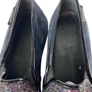 Hogan Rebel R141 suede slip-ons detailed with glittered leather front part, elastic side inserts and leather. Made in Romania.
