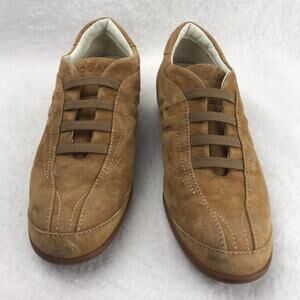 Hogan Women's Logo Suede Slip-On Shoes Sneakers Tan Camel Size 35.5 (US 5) Italy