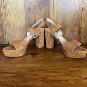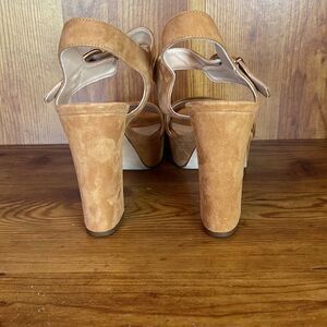 Hogl Brown Suede Chunky Heels size 7.5? Adjustable Strap