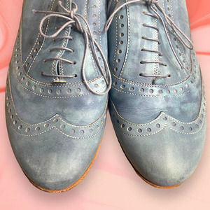 Hogl Light Wash Teal Leather Lace Oxford Dress Shoes Size 7.5
