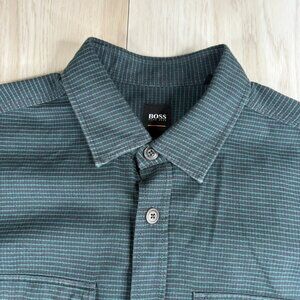 Hogo Boss Mens Green Long Sleeve Regular Fit Striped Button Up Shirt Size XL