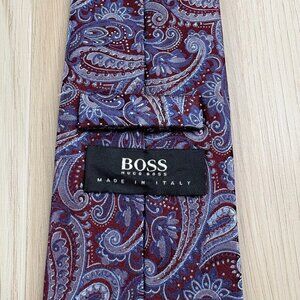 Hogo Boss Mens Purple & White Paisley Print Silk Office Wear Tie 60x3 Inches