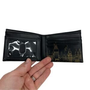 ITEM in Excellent Preowned Condition. Fold out, Hogwarts silhouette, 3 Card Spaces, I.D. Window, Bill fold slot. Vinyl.