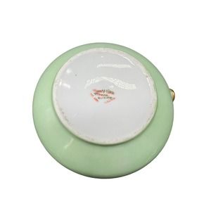 Adorned in an enchanting black and seafoam green, this pitcher boasts a captivating fruit and leaf pattern with delicate gold accents. Its timeless charm is further enhanced by its age-induced wear on the handle, adding character and allure.
