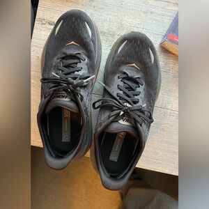 Step into comfort and performance with Hoka's black athletic shoes, designed for those who value both style and functionality. These shoes feature a sleek black upper with breathable panels, ensuring your feet stay cool during intense activities. The durable construction and versatile design make them perfect for both athletic pursuits and casual outings.
