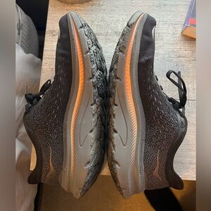 These shoes have been worn for a few runs, wear and tear noted in pictures. They do however, have so much life left. I have swapped to a more barefoot/zero drop type shoe and no longer can wear these. I hope someone else can enjoy them! Especially because I searched long and hard for this make, model and color- since I loved the look of this shoe so much!