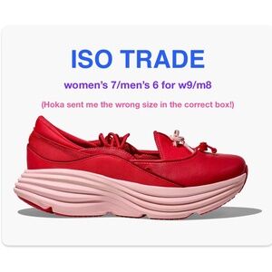 Hoka sent me the correct box with the wrong shoes inside. These are women’s size 7, and I’m hoping to trade for a women’s 9! They’re completely sold out on the Hoka website with no plans to restock according to the customer service guy I just talked to.