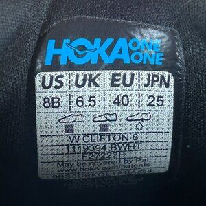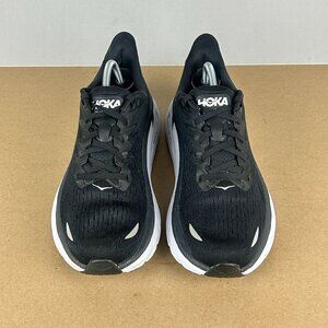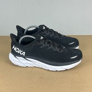 Hoka Clifton 8 Athletic Running Shoes Womens 8 Black White Low Top Lace Up