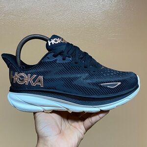 Hoka Clifton 9 “Black Rose Gold” Running Sneakers Size 6 Wide
