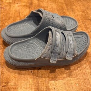 Stylish Hoka slide sandals. Features adjustable straps. Perfect for casual wear.