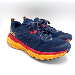 Hoka Men's Challenger ATR 6 Low Top Lace Up Running Walking Sneakers. Size 10D. In amazing pre-owned condition - only worn a few times. Navy blue with red and orange accents. MSRP $180.