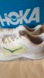 Sleek Hoka shoes in white with vibrant yellow details. Ideal for running.