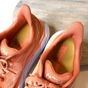 Up for sale: Hoka One One Arahi 6 Women’s Running Shoes US Size 6.5 Peach Orange Stability Sneakers. These sneakers are in great overall condition with some signs of use — please see photos for details. Original purchase price was $140.00.