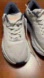 Hoka One One shoes in cream and navy. Perfect for running. Sleek design.