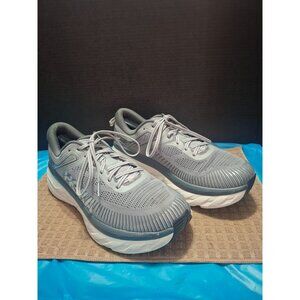 Hoka One One Bondi 7 Mens Running Shoes Size 10.5 4EW Gray Mesh Cushioned