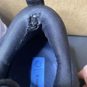 Condition: Fair. Moderate wear with visible flaws. Right shoe has a hole inside the heel lining, and there is wear to the heel collar and lace area as shown in photos. Some dirt/discoloration on the outsoles.
