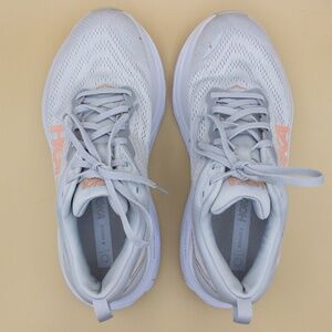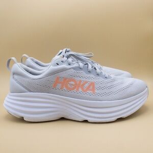Preowned, Hoka One One Bondi 8 Wide Gray Running Shoes with some wear but in good condition. See ALL photos for quality and condition.