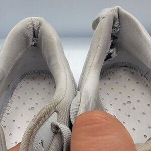 Fair looking shoes. As you can see in the pictures, these come with no insole and there is tears on the inside heel area of both shoes.