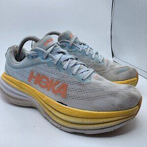 Hoka One One Bondi 8 Womens Size 10.5 B Gray Yellow Athletic Shoes Running Walk