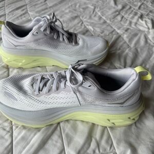 HOKA - One of the hardest working shoes in the HOKA lineup, the Bondi takes a bold step forward this season reworked with softer, lighter foams and a brand-new extended heel geometry. Taking on a billowed effect, the rear crash pad affords an incredibly soft and balanced ride from heel strike to forefoot transaction. https://www.hoka.com/en/us/mens-everyday-running-shoes/bondi-8/1123202.html