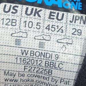 Hoka One One Bondi 9 Women's Size US 12B Black Athletic Running Sneakers.