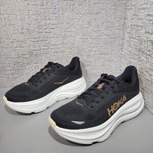 Hoka One One Bondi 9 Women's Size US 9B Black Rose Gold Athletic Running Shoes.