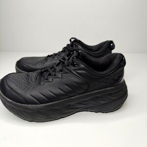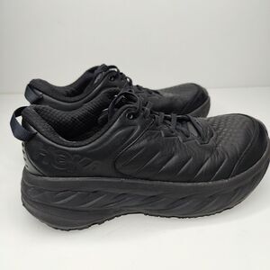 Hoka One One Bondi SR Women's Size 9 Black Water Resistant Leather Shoes. Good pre-owned condition. See photos for extra measurements.
