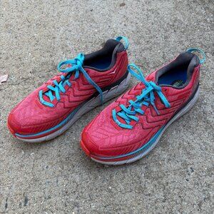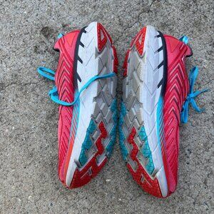 Hoka One One Clifton 4 Womens 9.5 Red Blue Running Walking Sneaker Trainers Gym