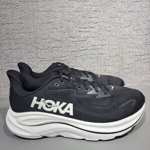 Hoka One One Clifton Wide 10 Men's Size US 10.5 2E Black White Athletic Sneakers