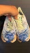 Dynamic Hoka shoes with a blue and yellow design. Perfect for running and workouts.