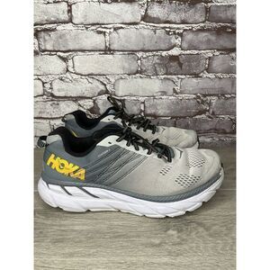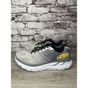 Selling Hoka One One Clifton 6 Gray Running Shoes 1102872 LLRC Men’s 12.5 2E US/47 1/3EU Preowned Marks of use and wear refer to pictures Beautiful shoes Strong Fast delivery Experience the ultimate comfort and performance with these Hoka One One Clifton 6 Gray Running Shoes. Designed for men with UK shoe size 12 and US shoe size 12.5, these sneakers feature a low top shoe shaft style and lace-up closure for a secure fit. The colorblock pattern adds a touch of style to these athletic shoes, perfect for outdoor and sports activities. Crafted with synthetic upper material and foam insole material, these shoes provide cushioned and breathable support for gym and training, walking, and running and jogging. The rubber outsole material ensures durability and traction, making them suitable for various seasons such as summer, fall, and spring. Get ready to elevate your activewear and casual wear with these Hoka One One Clifton sneakers, perfect for workwear and athletic occasions.
