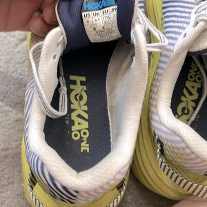 Hoka One One sneakers . Bright yellow sole adds a pop of color. Used in good condition.Ideal for active wear.size 6