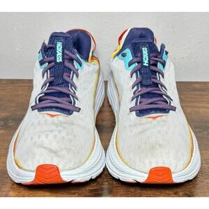 Shoes are a rare HOKA color scheme are they are no longer making it. They are in fair condition. There is a small hole on the outer netting of the front of one of the shoes. There is also some other small signs of wear and dirt build up in the creases. Please see photos.