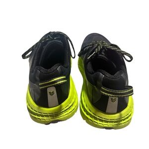In very good preowned condition, with light wear and no damage. High quality and super comfortable, supportive men's running shoe from Hoka. Style is SpeedGoat 3, in green and black. Tread is in good condition, see pictures. Size 9.5 women's.