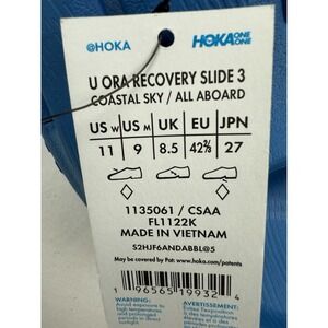 Hoka Ora Recovery Slide 3 Coastal Sky/All Aboard Women's Sz 11 Mens 9 Blue New