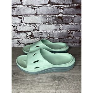 Selling Hoka Ora Recovery Slides 3 Mist Green Rubber Trellis Slides Wedge Sandals Men Sz 12M US/45EU
