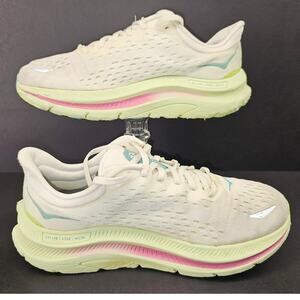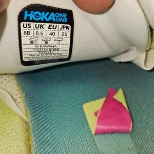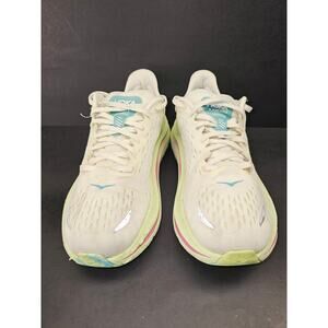 Hoka worn on midsole front. Details also shown in pics. Size is Women 8 in white color